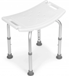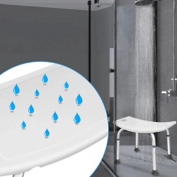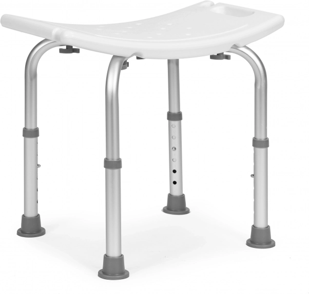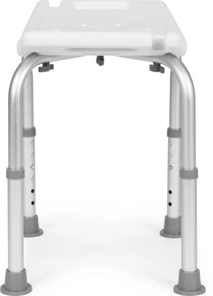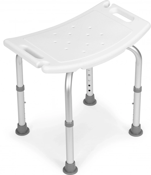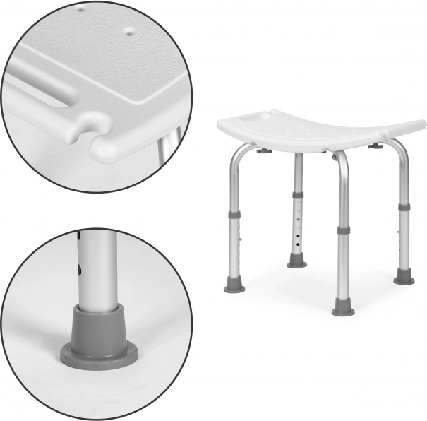 Udobna tuš stolica s izdržljivim aluminijskim okvirom i sjedalom od trajnog polietilena osigurava pouzdanost pri svakodnevnoj higijeni. Teksturirano sjedalo s odvodnim otvorima sprječava klizanje i brzo odvodi vodu, dok protuklizne gumene nožice drže stolicu čvrsto na mjestu čak i na mokroj podlozi.