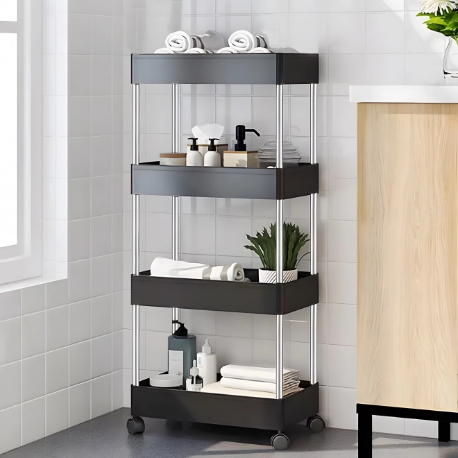 Četiri praktične police pružaju dovoljno prostora i na uskim mjestima – idealno za kozmetiku, ručnike ili sredstva za čišćenje.