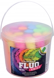 Set sadrži 20 kom fluorescentnih kredica u praktičnoj kantici.