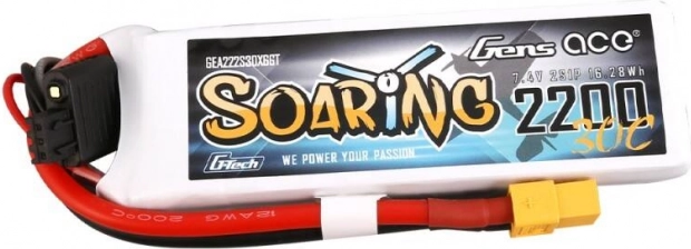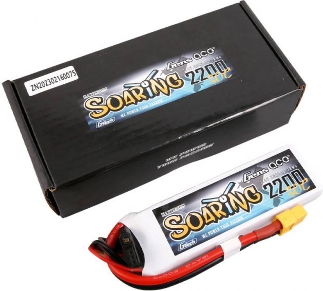 Gens Ace Soaring baterija s kapacitetom 2200mAh i naponom 7,4V izvrstan je izbor za modelare koji traže pouzdan i dugotrajan izvor energije. Zbog male mase i kompaktnijih dimenzija idealna je za različite vrste daljinski upravljanih modela.