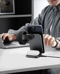 Uživajte u dvostruko bržem bežičnom punjenju u usporedbi s uobičajenim podloškama od 7,5 W. MagFusion isporučuje do 15 W kompatibilnim iPhone uređajima te istodobno puni Apple Watch i AirPods.
