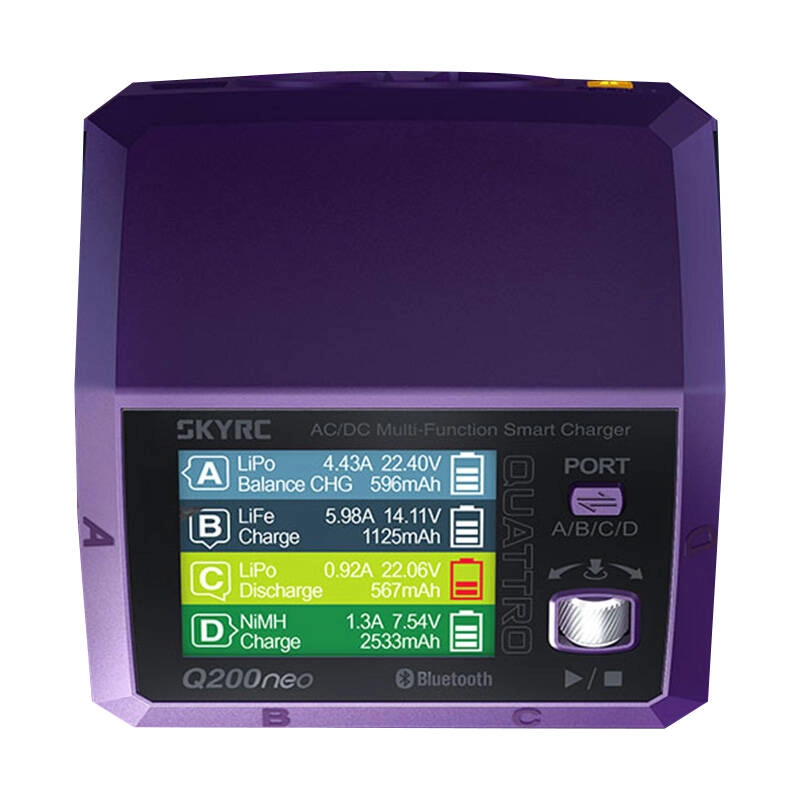 SKYRC Q200neo ubrzat će vašu pripremu za let ili utrku: u AC načinu isporučuje do 200 W, a u DC do 400 W, pri čemu po svakom portu daje do 100 W. Pri korištenju dva porta iz AC-a koncentrira snagu na maksimum, a pri četiri porta je dinamično raspodjeljuje prema potrebi. Aktivno hlađenje i napredno upravljanje punjenjem (MCU, PID) drže temperaturu i struju pod kontrolom.