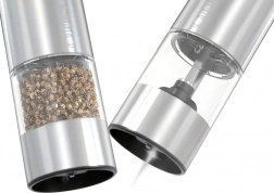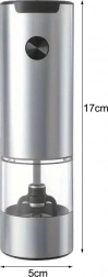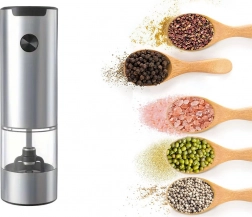 Ovaj električni mlinac za začine donosi udobnost i učinkovitost u vašu kuhinju. Opremljen snažnim i tihim motorom, može brzo i učinkovito mljeti razne vrste začina, od soli i papra do egzotičnih mješavina.