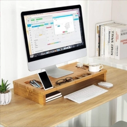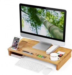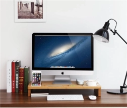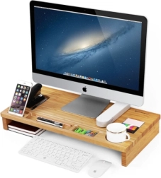 Poboljšajte svoje radno mjesto stilskim bambusovim stalkom koji spaja ergonomiju i organizaciju. Podizanjem monitora u razinu očiju smanjuje opterećenje vrata i leđa, dok promišljeni pretinci drže sve potrepštine pri ruci – od telefona i pisaćeg pribora do šalice.