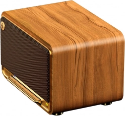 Elegantna drvena izrada s retro prizvukom, kućište od 12 mm MDF-a i skrivena ručka za udobno nošenje. Do 12 sati autonomije na jedno punjenje.