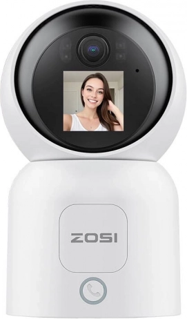 Pametne funkcije za svakodnevnu udobnost – kamera podržava dvosmjernu komunikaciju zahvaljujući ugrađenom mikrofonu i zvučniku, automatski prati osobe i nakon akcije se vraća u početni položaj. Na kućištu je 1,44" zaslon koji prikazuje datum, vrijeme i vrijeme/temperaturu i vlažnost. U aplikaciji ZOSI Smart (Android/iOS) i softveru AVSS (PC/Mac) pratite prijenos uživo, postavljate zone privatnosti (do 5) i vrste obavijesti.