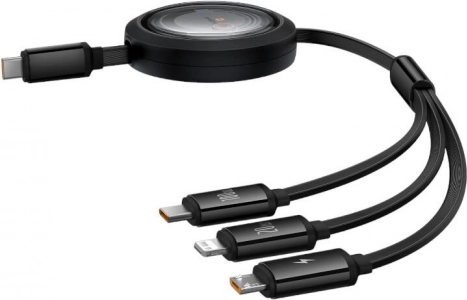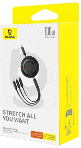 Izvlačni 3-u-1 punjački kabel BASEUS Free2Draw USB‑C/Lightning/Micro 100 W, 1,1 m, crni