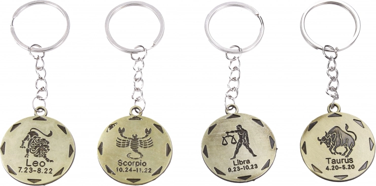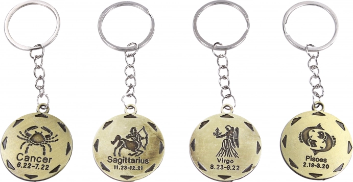Stilni okrugli privjesak za ključeve s motivom zodijaka. Dostupno 12 znakova – idealan dodatak za ključeve, ruksak ili torbicu te odlična ideja za poklon.