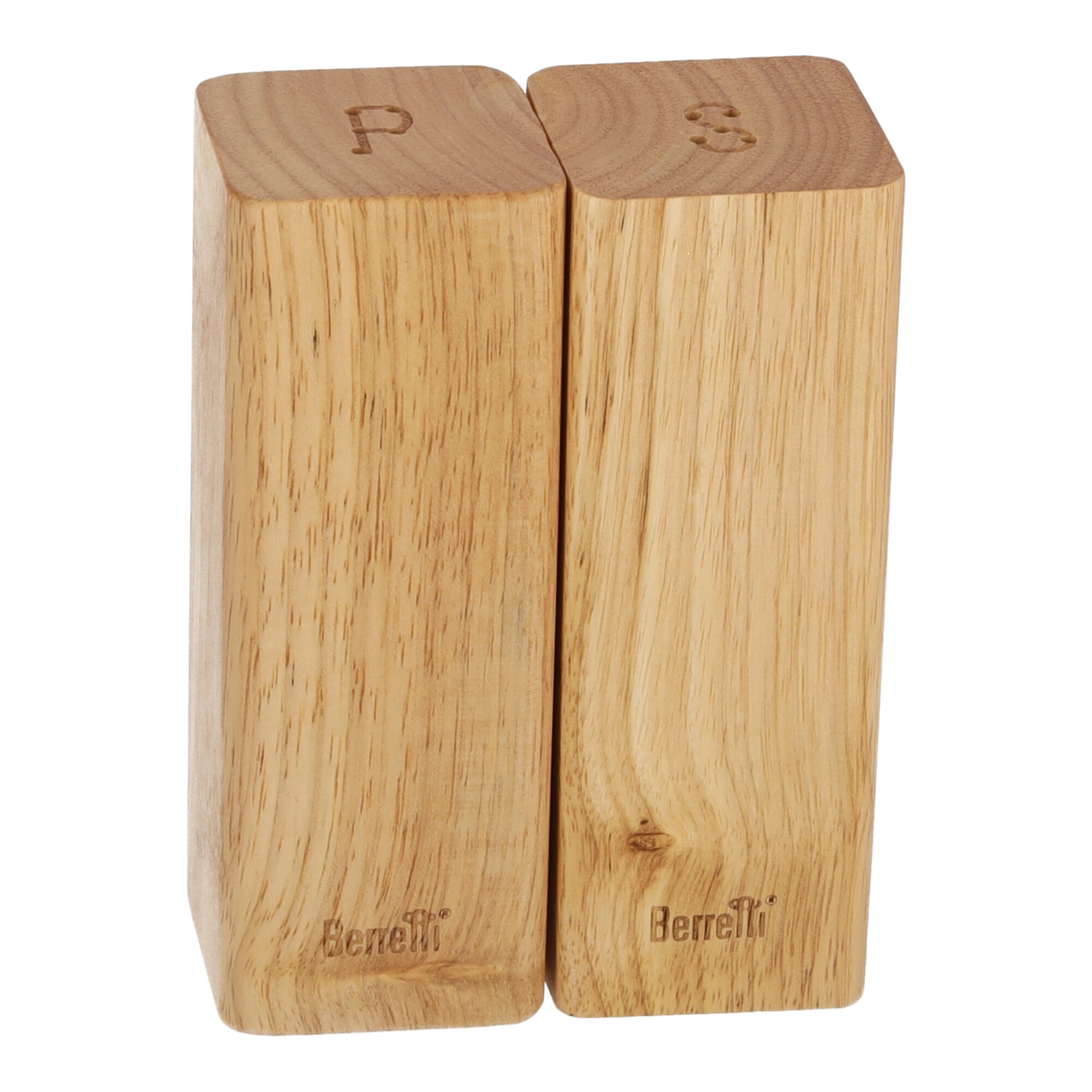 Set BERRETTI, koji se sastoji od soljenke i posudice za papar, izrađen je od prirodnog drva kaučukovca. Njegov jednostavan geometrijski dizajn dimenzija 5,5x5,5x15 cm daje svakoj kuhinji eleganciju i modernost. Drvo kaučukovca osigurava izdržljivost i čvrstoću, a ujedno unosi toplinu i prirodan šarm. Ovaj praktičan i stilski set prikladan je za svaki stol i olakšava doziranje soli i papra.