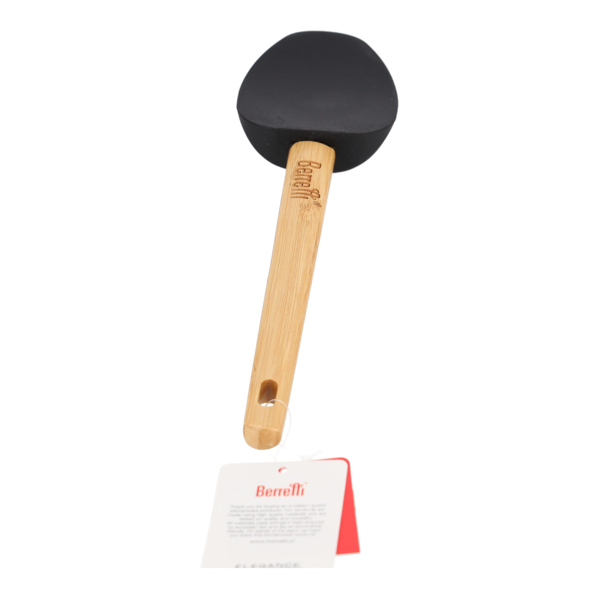 Žlica BERRETTI NATUR GREY PLUS duljine 30 cm praktičan je kuhinjski alat koji spaja moderan dizajn s ekološkim materijalima. Silikonski dio žlice otporan je na visoke temperature, pa je idealan za miješanje i posluživanje vrućih jela. Zahvaljujući mekom silikonu, žlica ne grebe površinu posuđa, stoga je sigurna za upotrebu s neljepljivim premazima.