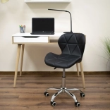 Ova moderna uredska stolica izvrsno se uklapa u dječju sobu, atelje, ured ili recepciju. Presvlaka od izdržljive eko kože s decentnim prošivima djeluje elegantno, lako se čisti i dugo zadržava izgled. Petokraka kromirana baza s gumiranim kotačićima osigurava stabilnost te nježno, tiho kretanje po podu.
