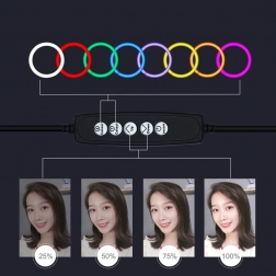 Kružna lampa snage 15 W nudi šarene RGB modove i prirodno bijelu. Pomoću upravljača na kabelu brzo mijenjate boju, prilagođavate svjetlinu i uključujete/isključujete svjetlo.