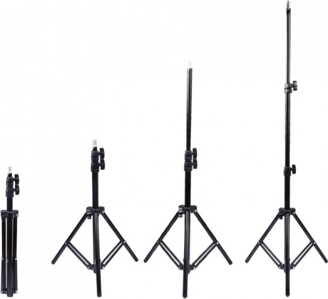 Sklopivi stativ ima visinu 49,5–110 cm, pa se lako prilagođava radu za stolom i snimanju u stojećem položaju. U pakiranju se nalaze LED lampa, stativ i kabel s upravljanjem – sve spremno za trenutačnu upotrebu.