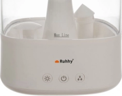 Ovlaživač se lako upravlja zahvaljujući prednjim dodirnim tipkama, koje omogućuju regulaciju količine ispuštene pare i odabir željenog načina osvjetljenja. Pogodno i za aromaterapiju – dodavanjem kapi eteričnog ulja stvorit ćete opuštajući miris.