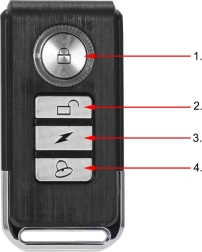 Paket uključuje daljinsko upravljanje za ugodno aktiviranje i deaktiviranje alarma. Zahvaljujući kompaktnom dizajnu i jednostavnoj instalaciji alarm se brzo može postaviti na okvir bicikla ili na skriveno mjesto na motociklu.