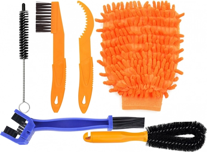 - četka za gume, rukavica od mikrovlakana, uska četka za procjepe, kuka/strugač za kasetu, četka za lanac, univerzalna četka, četka za kasetu