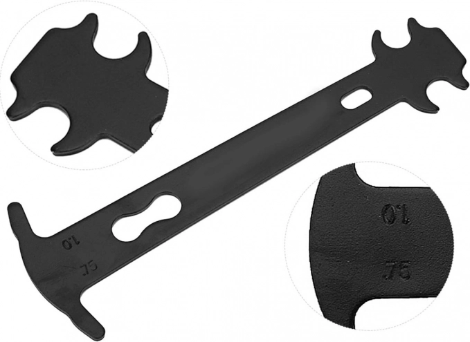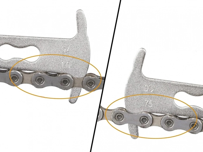 Ovo metalno mjerilo lanca neizostavan je alat za svakodnevno i sezonsko održavanje bicikla. Zahvaljujući jasno označenim vrijednostima 0,75 (lanac se približava zamjeni) i 1,0 (lanac je potrebno odmah zamijeniti) brzo ćete odrediti stupanj istrošenosti i zaštititi svoj pogon od preranog oštećenja.