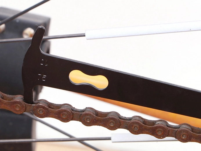 Upotreba je intuitivna: umetnete mjerilo u karike lanca i odmah znate rezultat. Alat je prikladan za sve tipove bicikala, a zahvaljujući kompaktnim dimenzijama stane u torbicu ili džep dresa – idealno za kućni servis i brzu provjeru prije vožnje.