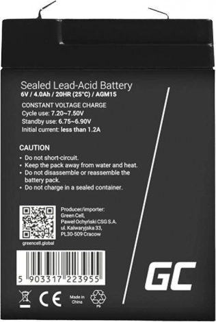 Baterija Green Cell AGM 6V/4Ah idealno je rješenje za one koji traže pouzdan izvor energije za sigurnosne sustave, blagajne i igračke. Bezodržavan rad osigurava jednostavnu upotrebu i dug vijek trajanja.