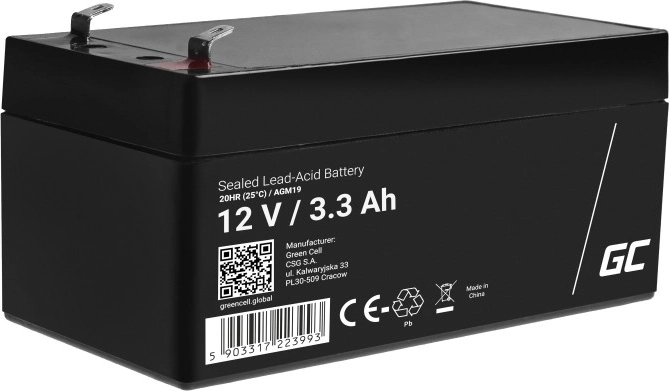 AGM 12V baterija Green Cell je model izrađen od visokokvalitetnih materijala, prikladan za stacionarni i ciklički rad. Baterija se temelji na AGM tehnologiji, što znači da je elektrolit apsorbiran u separatoru od staklenih vlakana, čime se sprječava njegovo curenje. Zahvaljujući tome baterija može raditi u mnogim položajima, ne samo u uspravnom. To je izvrsna, znatno sigurnija alternativa olovnim akumulatorima.