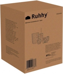 U setu ćete pronaći sve za čistoću i red: dozator sapuna s metalnom pumpicom, sapunicu s bambusovim umetkom za odvod vode, čašu, stalak za četkice s bambusnim poklopcem i otvorima, WC četku s ručkom od nehrđajućeg čelika i koš za otpad sa širokim kružnim otvorom za laku zamjenu vrećice.
