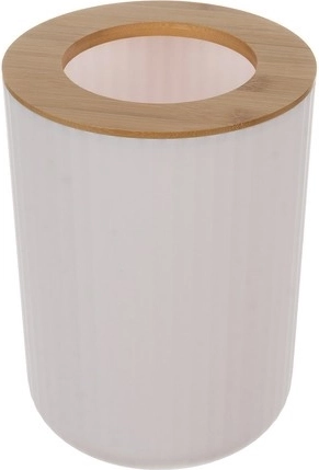 Ovaj komplet uključuje kantu za otpad, WC četku s držačem, dozator sapuna, čašu, čašu za četkice i posudicu za sapun. Zahvaljujući kombinaciji PP plastike, ABS-a, bambusa i nehrđajućeg čelika nudi izvrsnu otpornost na vlagu i dug vijek trajanja. Bijela rebrasta površina s bambus detaljima daje vašoj kupaonici moderan i prirodan dojam.