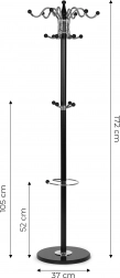 Gornji dio nudi 5 krakova koji stvaraju do 10 mjesta za vješanje kaputa i jakni. U sredini se nalaze dodatne kuke idealne za šešire ili torbice, a dolje praktična spirala za odlaganje kišobrana. Četiri niže kuke su pristupačne djeci, tako da mogu sami objesiti svoje stvari i učiti red.
