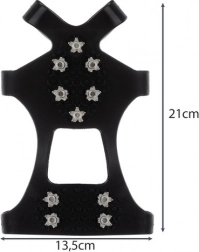 Stavljanje je pitanje trenutka – najprije navucite preko vrha, zatim zakačite za petu. Metalni klinovi i zupci raspoređeni su tako da osiguraju stabilnost u gradu i na zaleđenim stazama. Idealno za zimske šetnje, izlete i svakodnevne odlazak na posao.