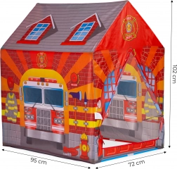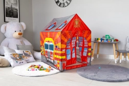 Dječji šator Vatrogasna postaja oduševit će sve male junake. Realistični otisci vatrogasnog vozila i opreme potaknut će djecu na role-play aktivnosti i samostalnu igru. Lagana, ali stabilna konstrukcija te izdržljiva poliesterska presvlaka osiguravaju lako prenošenje i sigurnu uporabu u domu i na otvorenom.