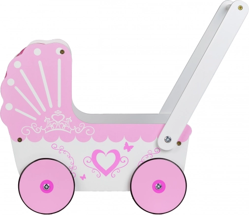 Drvena kolica za lutke ECOTOYS spajaju sigurnost, stabilnost i čaroban dizajn. Nježna ružičasta srčeka, zaobljena nadstrešnica i elegantne linije unijet će šarm u dječju sobu te istovremeno potaknuti maštu i socijalne vještine kroz igru njegovanja.