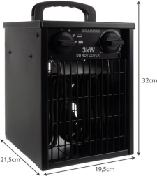 Snažna električna grijalica KAMINER snage 3000 W osigurava brzo i ravnomjerno grijanje manjih i srednje velikih prostorija do oko 30 m². Ugrađeni ventilator omogućuje učinkovitu cirkulaciju zraka i stabilnu toplinsku udobnost tijekom cijelog dana.