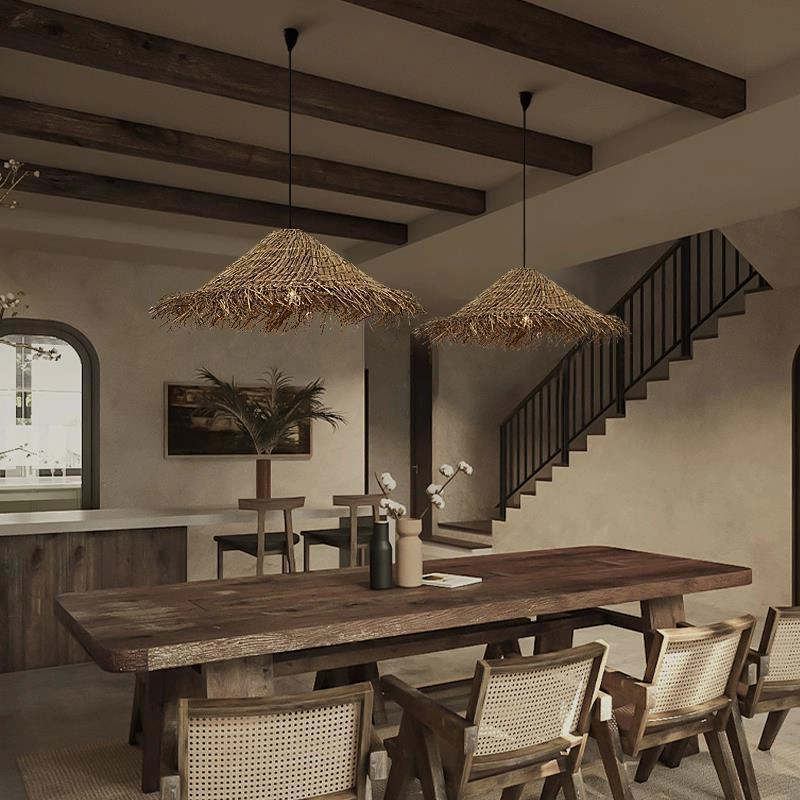 Ova dizajnerska viseća svjetiljka od prirodnog ratana unosi u interijer toplo, ugodno svjetlo i autentičan prirodni izgled. Organska tekstura i oblik slamnatog šešira čine je originalnim dodatkom za kuhinje, blagovaonice, dnevne boravke i spavaće sobe.