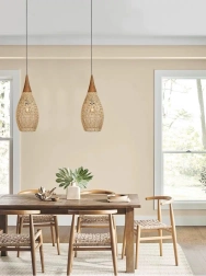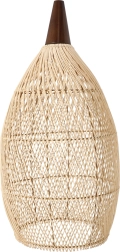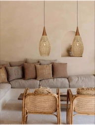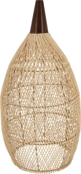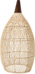 Elegantna viseća svjetiljka od prirodnog ratana i drva unosi u interijer toplu, ugodnu svjetlost i prirodan šarm. Zahvaljujući bezvremenskom obliku i materijalima izvrsno se uklapa u boho, skandinavske i rustikalne interijere – u dnevni boravak, blagovaonicu i spavaću sobu.