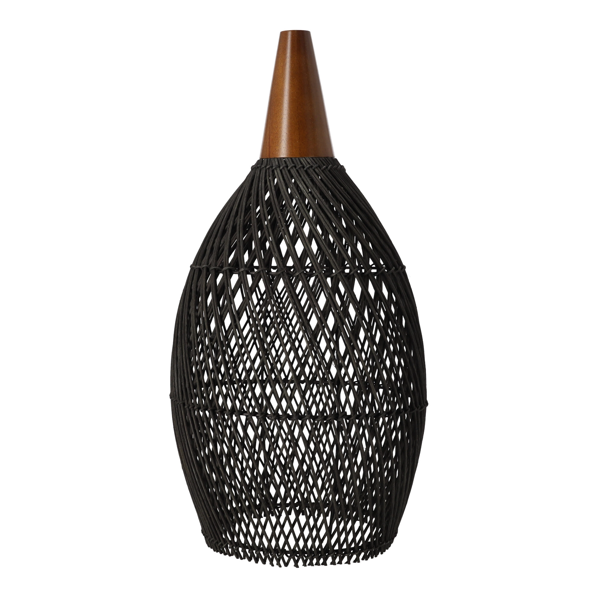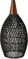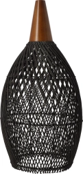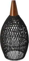 Kombinacija crnog ratana i drvenog akcenta daje svjetiljci topao, autentičan i suvremen dojam koji se slaže s boho i skandi interijerima.
