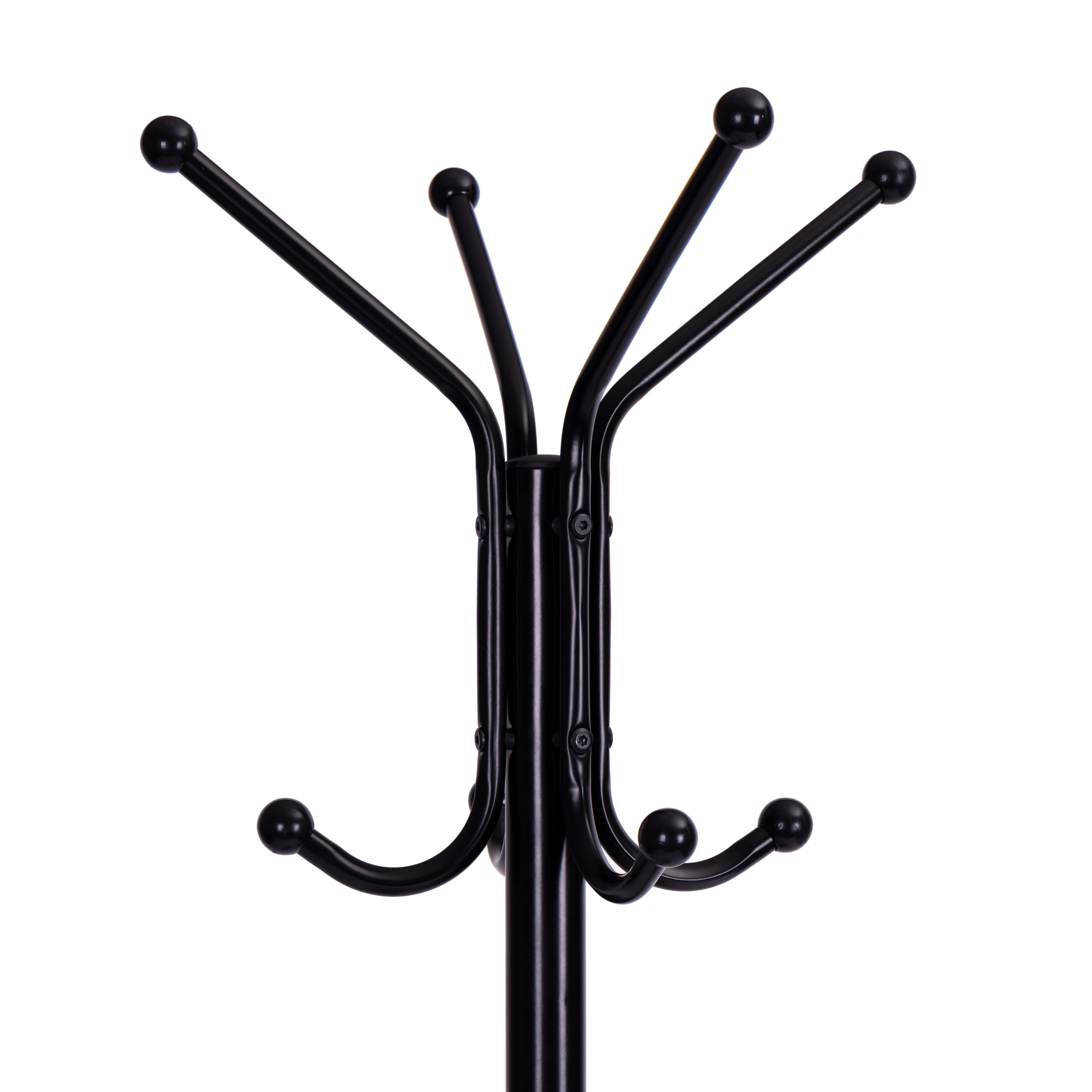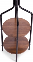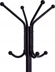 Gornji dio sadrži četiri kraka, koji pružaju 8 mjesta za vješanje odjeće. Donji dio opremljen je s dvije funkcionalne police u rustikalno smeđoj izvedbi. Konstrukcija je izrađena od prašno lakiranog metala, a baza od 4 proširene noge koje osiguravaju stabilnost i pri velikom opterećenju. Svaka noga završava kapicom koja štiti vaš pod od ogrebotina.