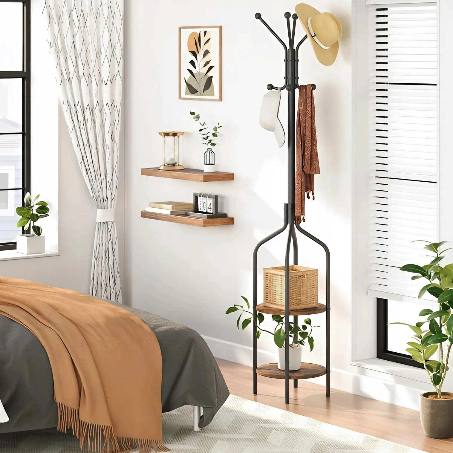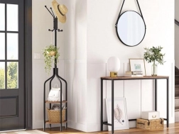 Kombinacija elegantne crne i rustikalno smeđe čini vješalicu stilskim dodatkom za svaki interijer.