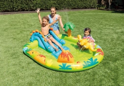 Priredite djeci beskrajnu zabavu s ovim nafukavajućim zabavnim centrom s motivom dinosaura! Omogućuje sigurne vodene igre i sadrži tobogan te druge interaktivne elemente.