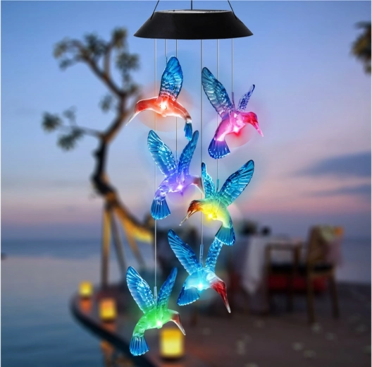 .Solarno svjetlo s kolibrićima jedinstveno je LED svjetlo koje unosi čaroliju na svaki balkon, terasu, vrt ili prostoriju. Zahvaljujući korištenju solarne energije, ovi zvončići se automatski uključuju nakon sumraka i mijenjaju boje između crvene, narančaste, plave, žute i ljubičaste, stvarajući čaroban svjetlosni efekt.