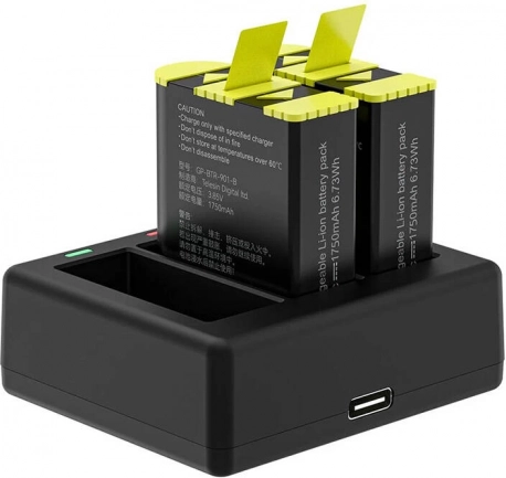 Uz ovaj trokanalni Telesin punjač vaše će akcijske snimke uvijek biti pod kontrolom. Puni do 3 baterije istovremeno, nakon potpunog punjenja automatski se zaustavlja, a zahvaljujući jasnim LED lampicama uvijek znate kada je gotovo. Dvije priložene baterije kapaciteta 1750 mAh osiguravaju do cca 112 minuta snimanja pri 4K/30 FPS (ovisno o uvjetima i postavkama).