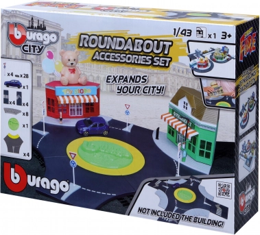 Izgradi vlastiti grad s igraćim setom Bburago City kružni tok 1:43. Set nudi 34 dijela uključujući ceste, nogostupe i dodatke, a uz to i metalni model automobila Bburago u mjerilu 1:43. Može se kombinirati s drugim setovima serije Bburago City za još veću zabavu i proširivanje.