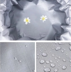 LDPE premaz osigurava potpunu vodootpornost i zaštitu od kiše, snijega i vlage. Obostrano srebrno‑sivo izvedenje za veću univerzalnost.