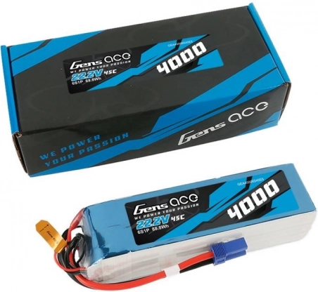 Ova LiPo baterija Gens Ace 6S (22,2 V) s kapacitetom 4000 mAh i opterećenjem 45C pruža snažne, stabilne performanse za zahtjevne primjene – od trkaćih dronova do snažnih RC modela. Zahvaljujući kvalitetnim ćelijama i pažljivoj konstrukciji, podnosi i intenzivnu akceleraciju i duge letove.
