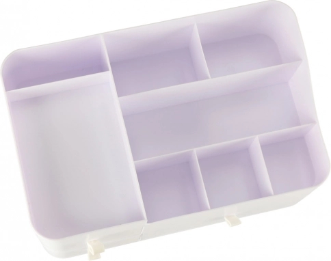 Organizirajte svoju dnevnu njegu s prostranim organizatorom koji spaja praktičnu podjelu i čist, moderan izgled. Tri glatko izvlačne ladice idealne su za palete, vatene jastučiće ili nakit, dok gornjih sedam pretinaca drži pri ruci kistove, ruževe, maskare i bočice parfema.