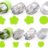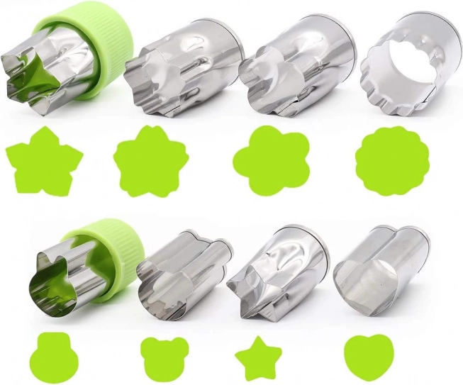 Set od osam multifunkcionalnih rezača omogućuje lako oblikovanje voća i povrća u različite kreativne oblike. Ergonomske plastične ručke štite ruke, a oštre nehrđajuće oštrice ubrzavaju rezanje.
