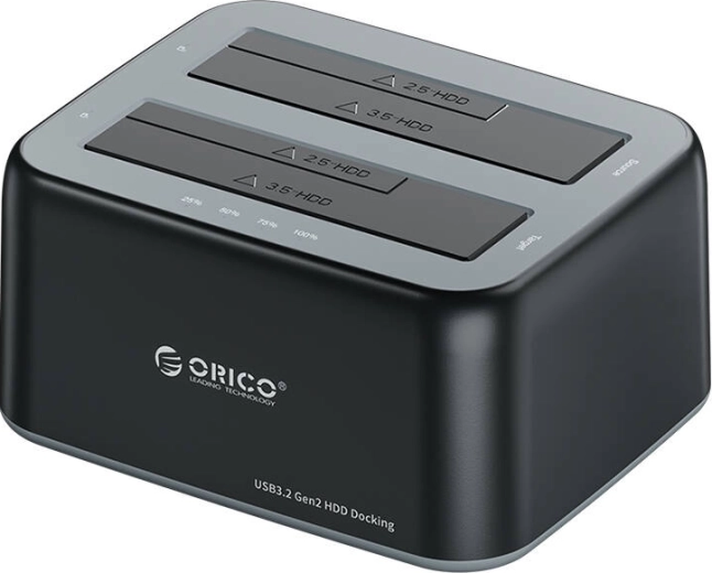Priključna stanica Orico omogućuje povezivanje i upravljanje 2.5" i 3.5" HDD/SSD diskovima brzinom do 10 Gb/s (USB 3.2 Gen 2). Nudi dvojni utor, funkcije UASP, TRIM i SMART za brz i stabilan prijenos, izvanmrežno kloniranje diskova, napajanje 12 V/3 A za pouzdan rad te podršku kapaciteta do 36 TB. Kompatibilna s Windows, macOS, Linux, Android i spremna za uporabu bez upravljačkih programa.