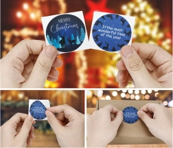 Ovaj dekorativni set naljepnica nudi širok raspon božićnih motiva poput sobova, drveća i svečanih želja. Svaka rola sadrži 500 naljepnica s osam različitih dizajna, osiguravajući dovoljno dekoracija za cijele blagdane.