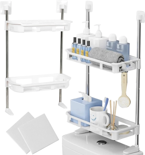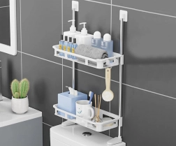 Ova zidna polica iznad WC-a idealan je izbor za male i velike kupaonice. Dvije razine pružaju dovoljno prostora za odlaganje bočica, sapuna, ručnika i četki, a pritom drže sve nadohvat ruke. Minimalistički dizajn u bijeloj boji lako se uklapa u većinu interijera.