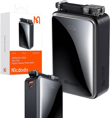 Tražite pouzdanu power banku za posao, putovanja i svakodnevnu upotrebu? Ova MCDODO power banka donosi kapacitet 25 000 mAh i maksimalnu snagu 100 W, pa bez problema puni i zahtjevnije uređaje poput prijenosnih računala (npr. MacBook Pro), telefona i tableta. Zahvaljujući trima priključcima (2× USB‑C, 1× USB‑A) udobno ćete istodobno puniti više uređaja, a dinamička raspodjela snage osigurava učinkovito i sigurno punjenje.