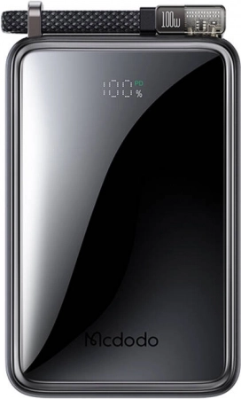 Praktični integrirani USB‑C kabel duljine 0,2 m učvršćuje se u kućište power banke kako se ne bi zapleo i uvijek je pri ruci. Kompaktne dimenzije olakšavaju prenošenje, a usklađenost s međunarodnim zrakoplovnim standardima omogućuje nošenje power banke u kabini zrakoplova.