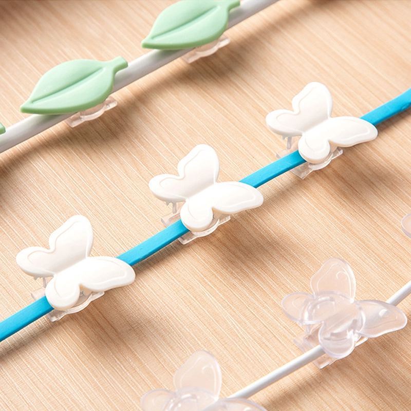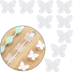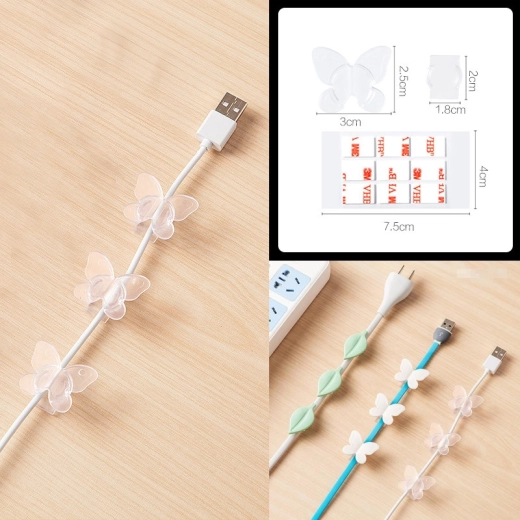 Dekorativni držač kabela u obliku leptira pomaže držati kabele i vodiče na okupu. Idealan za pričvršćivanje na mjesta poput zidova, noćnih ormarića, TV ormarića ili radnih stolova.